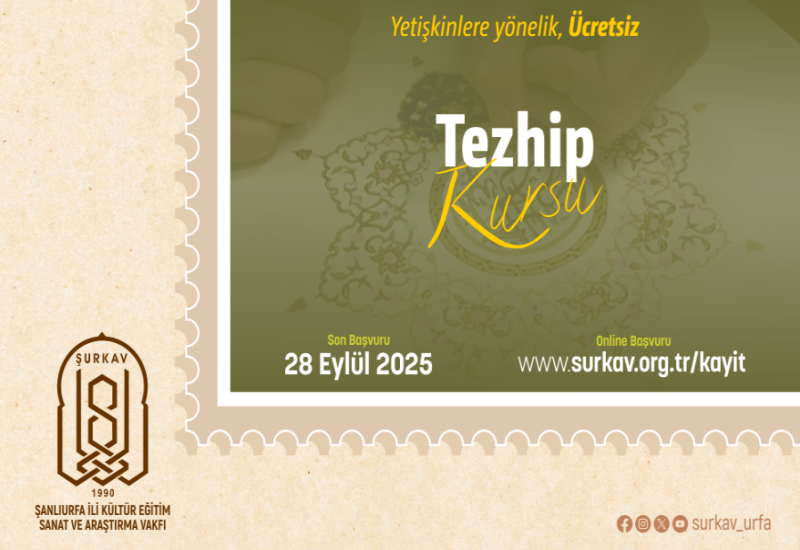Yetişkinlere yönelik, ücretsiz olarak verilecek olan Türk Halk Müziği, Türk Sanat Müziği, Klasik Türk Tasavvuf Musikisi, Halk Oyunları ve Tezhip kurslarına müracaatlar 8 - 28 Eylül 2025 tarihleri arasında https://www.surkav.org.tr/kayit adresinden çevrim içi yapılabileceği gibi, Yusufpaşa Mah. 886. Sk. No:27 adresinde bulunan ŞURKAV İdare Merkezi’nden de gerçekleştirilebilecektir.