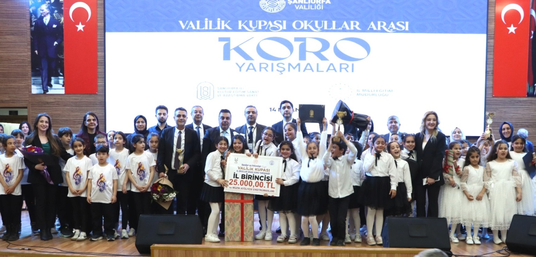 Şanlıurfa’da düzenlenen Valilik Kupası Okullar Arası Koro Yarışmaları kapsamında ilkokul kategorisi, 14 Nisan 2026 Salı günü gerçekleştirilen yarışmalarla tamamlandı. İl genelinden birçok okulun katılım sağladığı organizasyonda, minik öğrenciler sahne performanslarıyla büyük beğeni topladı.