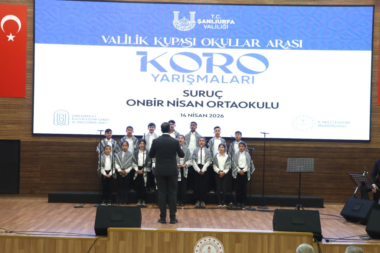 Şanlıurfa’da düzenlenen Valilik Kupası Okullar Arası Koro Yarışmaları kapsamında ortaokul kategorisi, 14 Nisan 2026 Salı günü gerçekleştirilen yarışmalarla tamamlandı. İl genelinden katılım sağlayan okulların sergilediği performanslar, izleyenlerden büyük beğeni topladı.