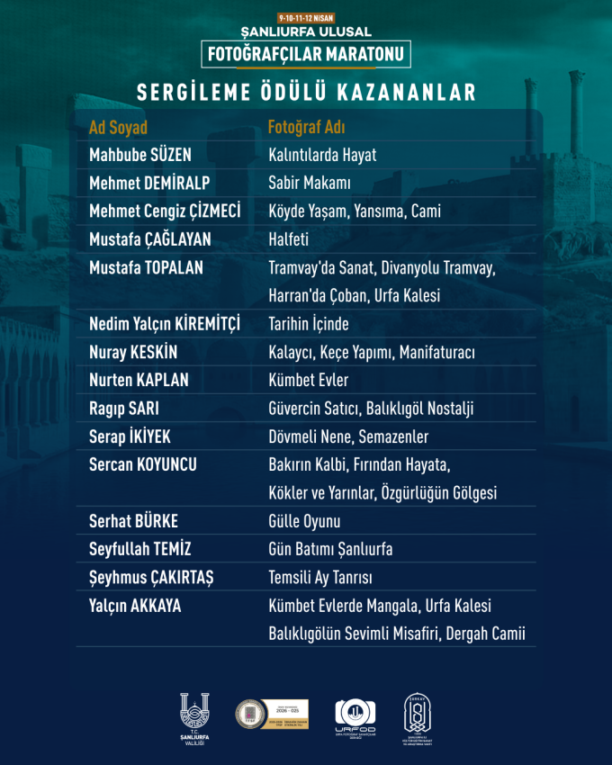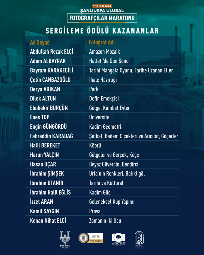 Şanlıurfa’nın kültürel ve sanatsal değerlerini görünür kılmayı hedefleyen organizasyon, aynı zamanda şehrin görsel hafızasına önemli katkılar sunarak, geleceğe kalıcı bir arşiv bırakma misyonunu da başarıyla yerine getirdi.